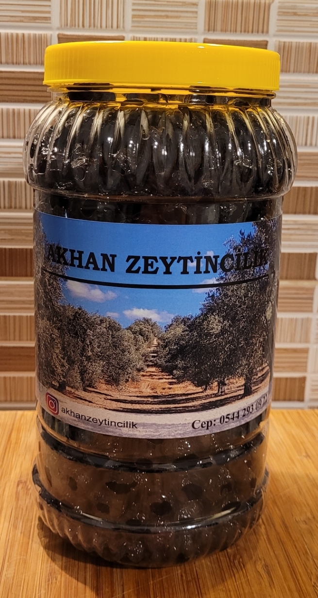 Akhan Zeytincilik Az tuzlu, Doğal fermente,iri boy, küçük çekirdekli siyah GEMLİK İRİ SELE ZEYTİN'i 2kg pet ambalajlarda sizlere sunuyoruz.